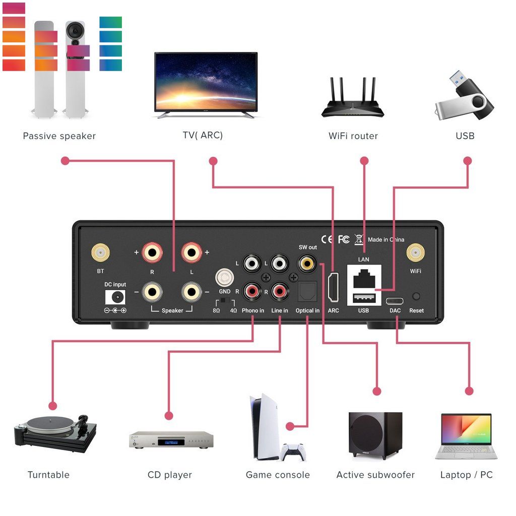 SMART EVO ідеально підходить для озвучення вітальні, офісу або спальні, де потрібне високоякісне стереозвучання та можливість підключення до телевізора та вінілового програвача.